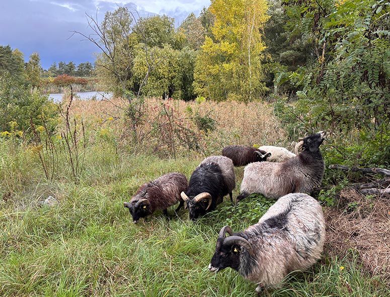Schon kurz nach ihrer Ankunft haben sich Spencer und seine Herde gut eingelebt. Sie weiden Gräser und Kräuter und knabbern auch an Robinienaufwuchs und junger Traubenkirsche – zwei Arten, die sich auf dem Gelände unerwünscht ausbreiten.